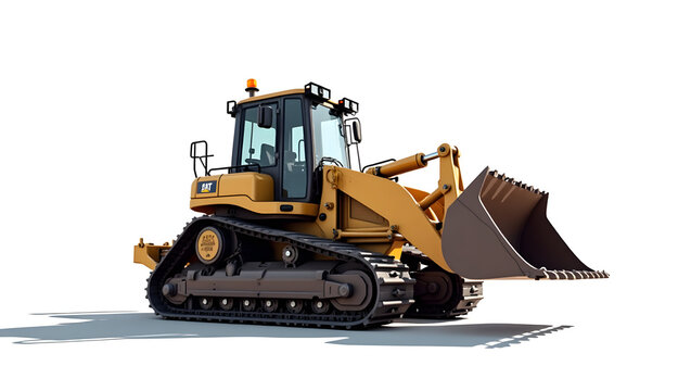 Construction Tracked earthmover with attached claw bucket, rendered with sharp contour shadows on clean white background