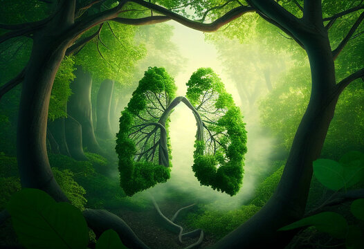 Green lungs filled with forest trees for a healthy environment and planet earth.