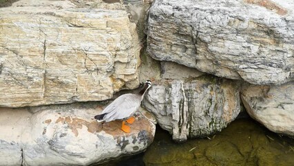 Duck bar-headed goose trims its feathers on the shore