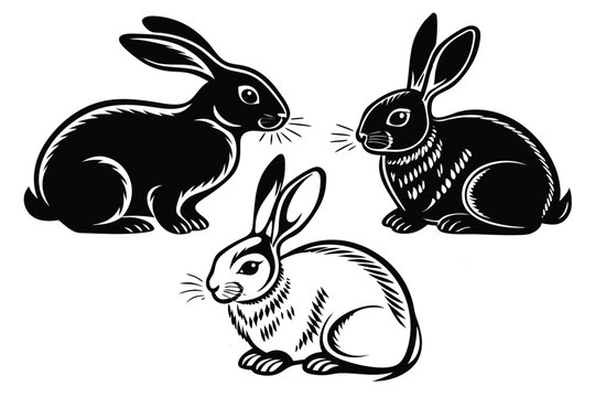 Rabbit Silhouette Vectors , black silhouettes isolated on white background