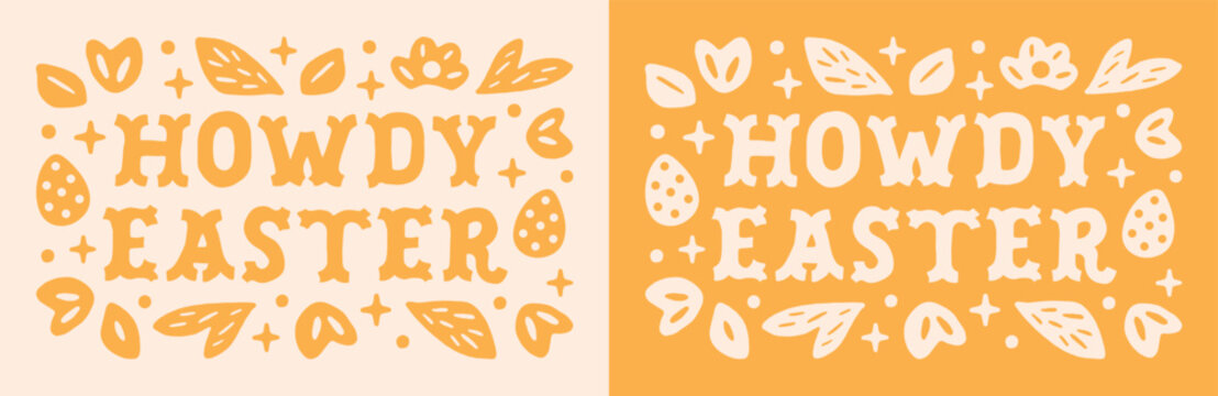 Howdy Easter country cowgirl funny quotes floral card retro vintage preppy flowers yellow aesthetic banner. Western cowboy theme party kids event invitation printable illustration shirt design decor.