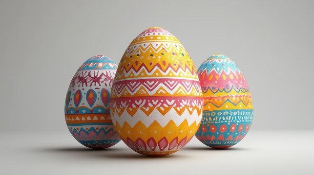 Intricately designed easter eggs on pastel background for spring greetings