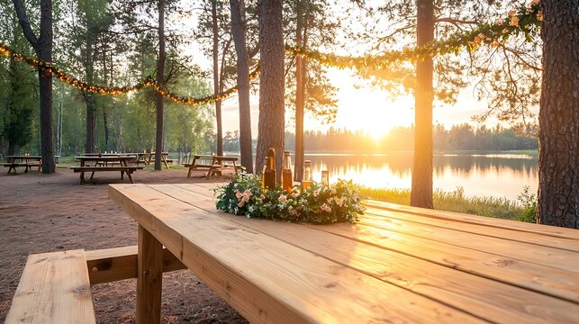Easter day celebration with pastel-toned eggs at a lakeside picnic nature viewpoint