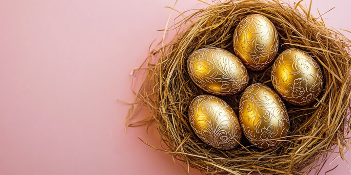 Easter sale banner design. Easter sale text up to 50% off promotion with 3d realistic eggs for seasonal shop discount advertisement. 3d rendering.