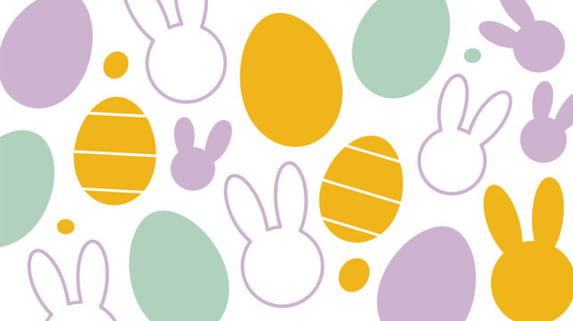 A pastel easter pattern with eggs and bunny silhouettes scattered on a white background design art