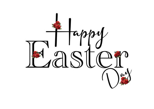 Happy Easter - written- -black color whit red roses - picture, poster, placard, banner, postcard, card.