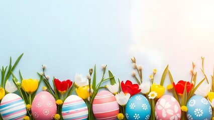 Vibrant easter eggs and flowers celebrating springtime and holiday traditions
