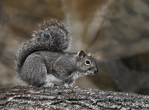 Eastern Gray Squirrel Standing on Dirt Mound Near Tree with Dramatic Lighting