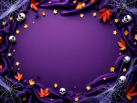 Spooky Halloween invitation design featuring skulls, spiderwebs, and vibrant autumn leaves with a transparent background for easy customization