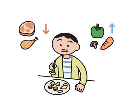 Eat less and eat healthy. person eating vegetable in dinner during control calories on dieting.