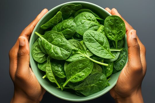 Young woman eating healthy food sitting in the beautiful interior with green flowers on the background