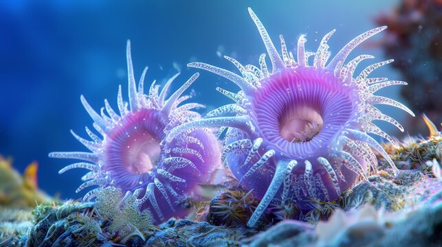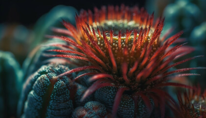 Sharp underwater thorn on purple echinoderm in tropical reef generated by AI