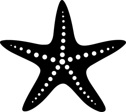 Simple line art drawing of starfish, five-pointed shape with intricate dotted patterns along arms, center. Black-and-white graphic perfect for educational materials, biology studies, general marine