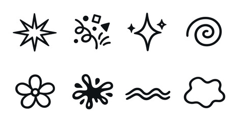 Energetic and eclectic monochrome doodle pattern, a vibrant abstract background showcasing a fun collection of hand-drawn skulls, stars, eyes, and playful elements