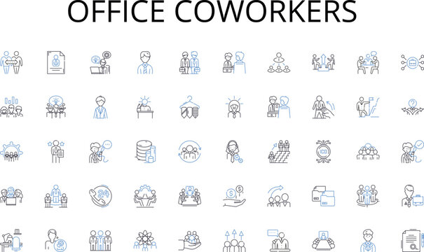 Office coworkers line icons collection. Urban, Bustling, Vibrant, Central, Iconic, Public, Pedestrianized vector and linear illustration. Historical,Modern,Social outline signs set