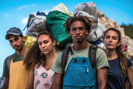 Group of eco volunteers recycling rubbish. Generative AI