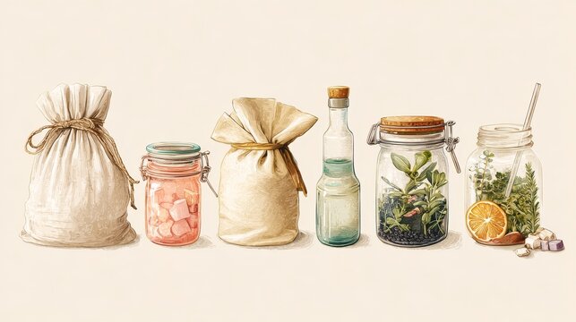 Eco-friendly kitchen storage with reusable bags and glass jars for sustainable living
