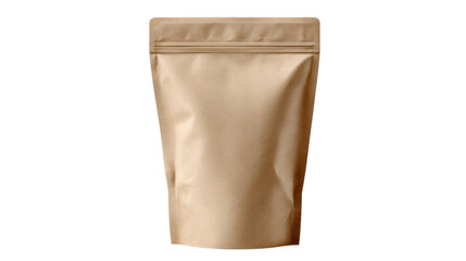 Blank brown kraft paper pouch for food packaging isolated on white background, eco friendly mockup for product branding and minimalist design