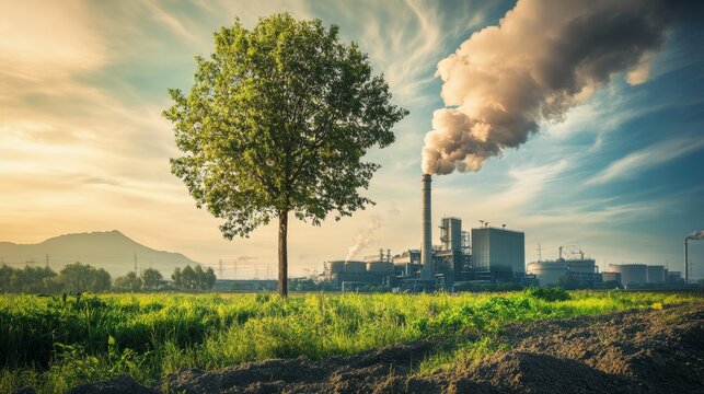 Green industry eco power for sustainable energy environmental friendly low carbon footprint. Green factory industry for good environment ozone air low carbon