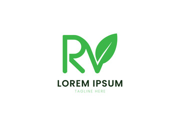 Minimalist green rv logo with leaf element on clean background for eco brands