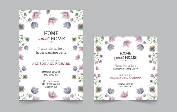 Set of housewarming party invitation templates, Vector illustration eps 10, a4 poster, and square post for social media