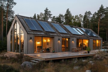 Sustainable community with green infrastructure. Eco friendly lifestyle concept. People cycling, planting, meditating. Renewable energy with wind turbines, solar panels, electric car.