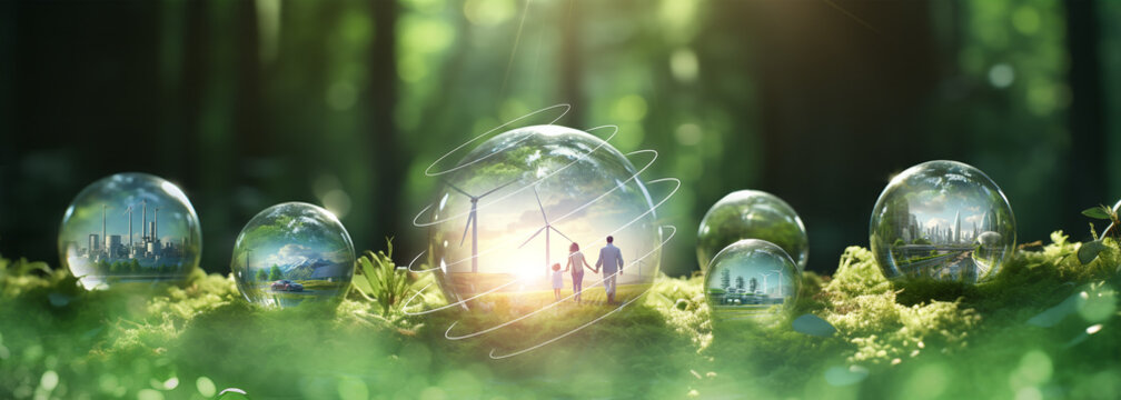 Ecological Green Energy Icons Concept Young plant springing up out of the moss soil