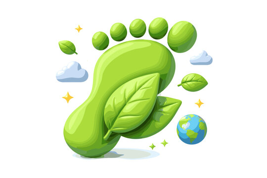 Green footprint with leaves and planet Earth, symbolizing ecological balance and sustainability