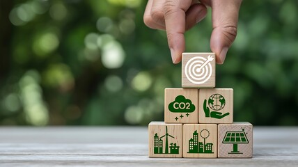 Hand holding a green glass globe against a bright sunlight and forest backdrop, representing environmental sustainability, eco-friendly innovation and global conservation efforts. Visual concept illus