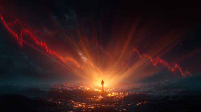 A sleek, modern graph with an upward arrow, depicting progress in business success, skill enhancement, and market growth, set against a backdrop of futuristic finance and economic prosperity.