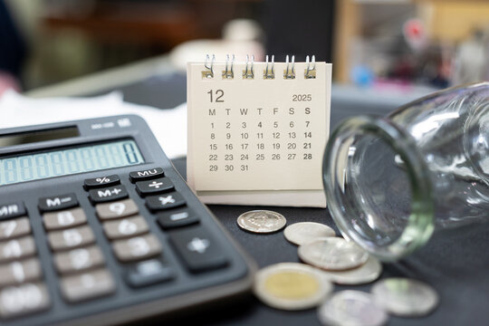 Monthly Expenses and Financial Struggles in 2025 DECEMBER. desk calendar DEC 2025. low income, and money not being enough to cover bills. budgeting, debt, and economic hardship.