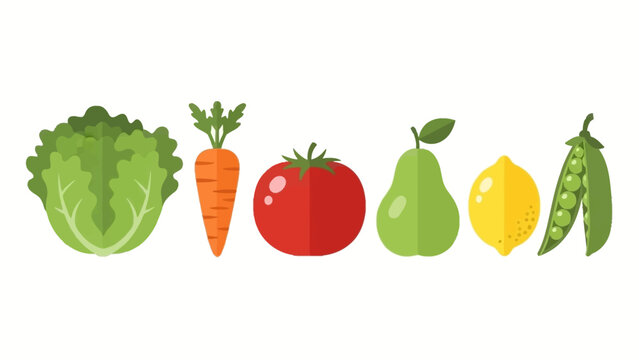 Assortment of fresh, healthy vegetables and fruits arranged in a line, showcasing a variety of produce