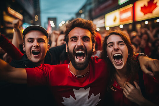 Canadian football fans celebrating a victory