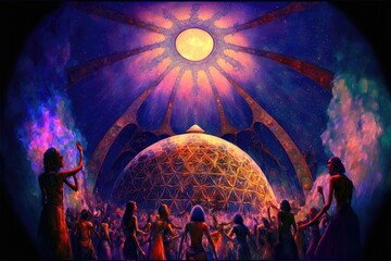 Sacred gathering full moon expansion and ecstatic dance. Generative AI