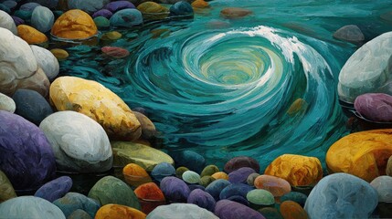 Whirlpool amidst colorful stones