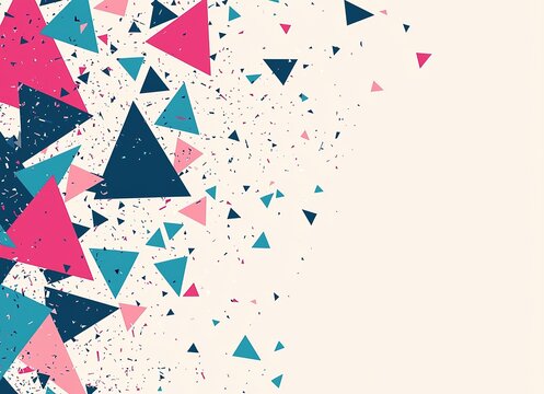 Colorful geometric triangles scattered on light background creating dynamic abstract pattern. Perfect for modern designs, posters or digital graphics.