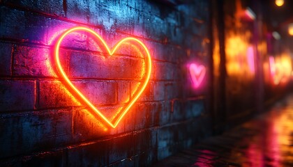 Ceramic skulls with heart-shaped eyes in vibrant red glow