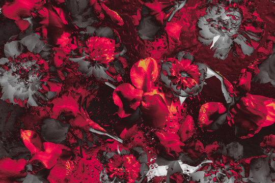 Crimson rose engulfed by swirling grey smoke, stark black backdrop, flower, image, valentines