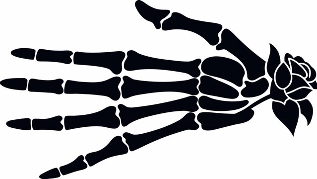 Striking skeleton hand clutching a rose for edgy designs and gothic flair, conveying dark romance