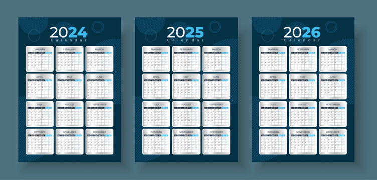 2024, 2025 Calendar - illustration. Template. Mock up