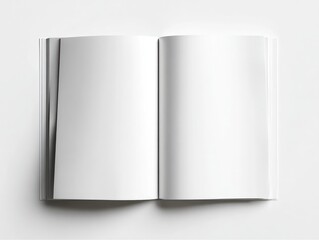 Open book, blank pages, white background.  A blank book lies open on a white surface, showcasing two pristine, white pages.  The pages are smooth and unmarred, ready for content