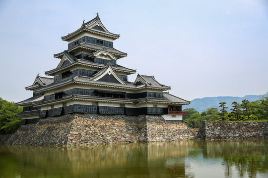 Matsumoto Castle, known as The Crow Castle surrounded by a water moat, Matsumoto, Japan.