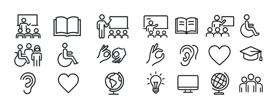 Vector flat illustrations, online courses for employees with disabilities, advanced training, analysis of infographics.