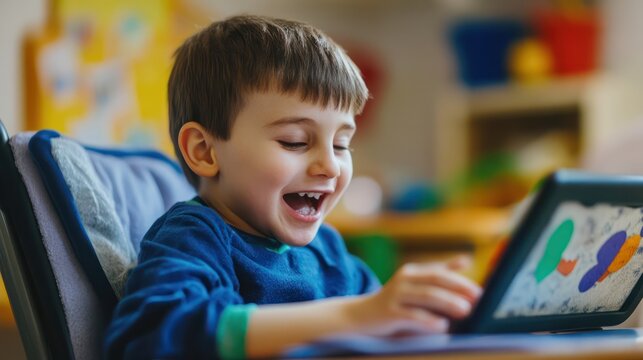 school student with VR headset using AI artificial intelligence technology & machine learning. Interactive technology in classroom. Innovation & smart tech Futuristic inclusive education