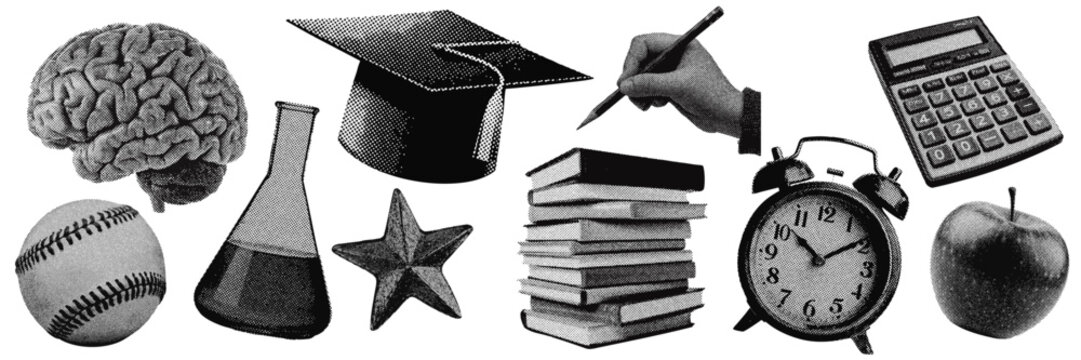 Set of school education halftone grunge vector design elements