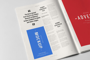 Newspaper Advertising Banner on Magazine, Brochure Mockup 3D Rendering