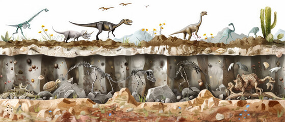 An illustration of dinosaur excavations and soil layers will serve as an informative backdrop for educational materials on palaeontology.