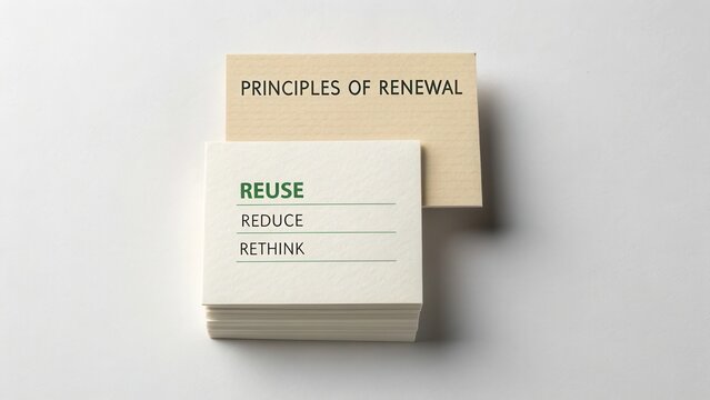 Principles of Renewal Concept with Index Cards Showing Reuse and Environment-Friendly Ideas for Sustainable Practices