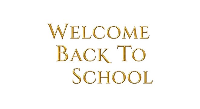 Welcome back to school text in golden color on a white background for educational purposes and back to school