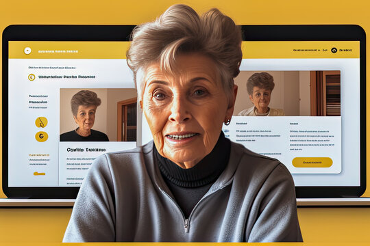Woman speaking for E-learning platform on both mobile and desktop concept - Generative AI